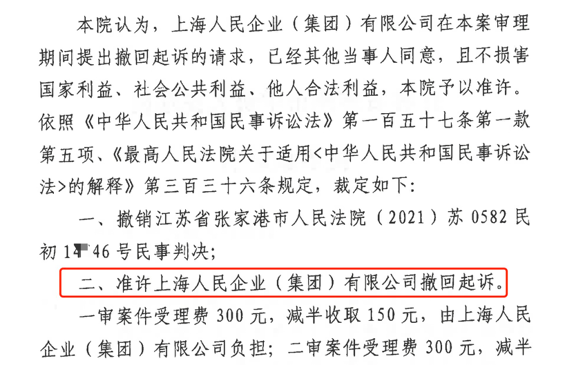 宿迁胜诉佳讯 | 人民企业系列案苏州六案上海人民公司撤诉